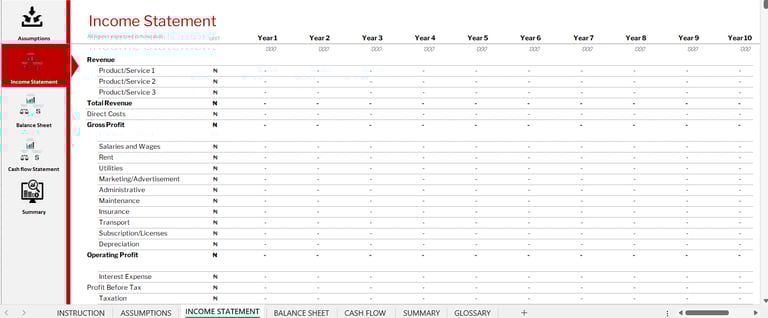 Modèle du Buisines Plan en Excel